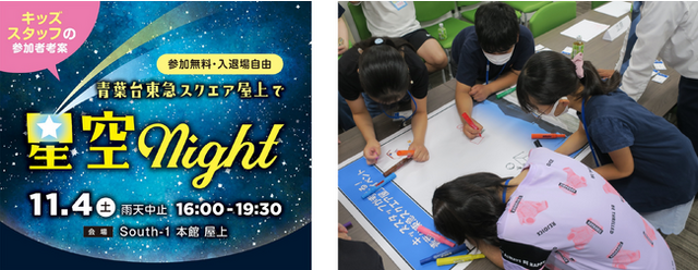 株式会社東急モールズデベロップメント(本社所在地:東京都渋谷区、代表取締役社長:佐々木桃子、以下:当社)は、地域密着型商業施設「青葉台東急スクエア(以下:当施設)」(所在地:神奈川県横浜市青葉区)にて、夏休みに開催したお仕事体験「キッズスタッフイベント」にて小学生が考案したイベントを、「青葉台東急スクエアの屋上で星空night(以下:本イベント)」と題して実現します。