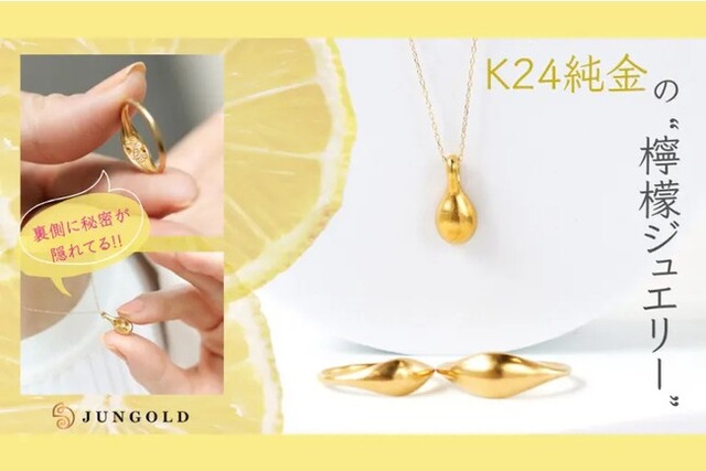 「純金で心躍る体験」をテーマに資産価値のある純金の新しいアイデアに挑戦している株式会社RAIN(本社:東京都台東区雷門、代表:石川 正道)は、「資産価値+心躍る体験」を提供する純金ブランドJUNGOLDから【檸檬のかたちと“隠れ縁起物”が新しい!K24純金のリング&ペンダント】プロジェクトをクラファンサイトCAMPFIREにて10月22日(日)からスタートしました。38,800円から
