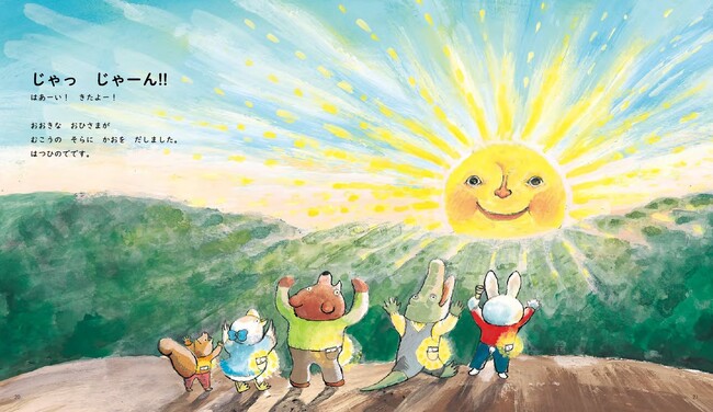 大晦日、うさぎくんたちにぴかぴか光る謎の手紙が届きました。うさぎくんたちは差出人を探しますが、見つかりません。翌朝、手紙に書かれていた通りに原っぱに行くと、おひさまがじゃっじゃーん! と現れて…。