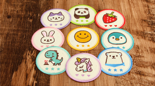 全9種類のワッペンは、メインカラーの糸色をすべて変えています。やさしい色づかいを基本とし、使用する色を減らしイラストを引き立てました。