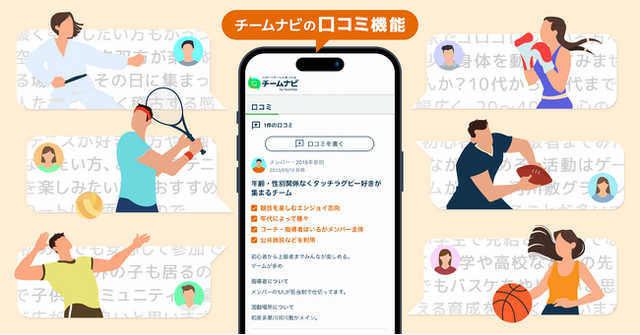 そしてこの度、これまでの「情報」に加えて「魅力や雰囲気」を伝えるため「口コミ機能」を新たに導入いたしました。この機能によって、現役メンバー、OBOG、保護者など、チームに関わる方々の声を、直接ユーザーへ届けることが可能に。チームの雰囲気を知ることができ、自分に合ったチーム選びが実現します。