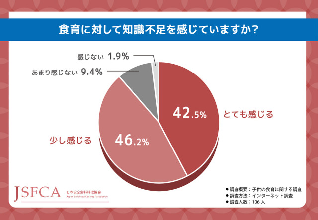 そこで今回、食育健康アドバイザー(R)資格認定試験(https://www.asc-jp.com/kenkousyoku/syokuiku/)を主催する日本安全食料料理協会(https://www.asc-jp.com/)は、全国20~60代の男女106名を対象に「子供の食育」に関する調査を実施しました。