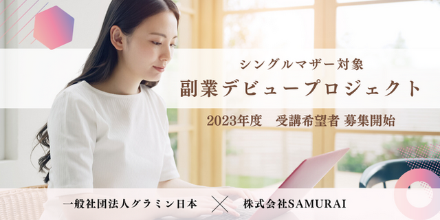 株式会社オープンアップグループ(本社所在地:東京都港区、代表取締役社長:佐藤 大央)のグループ企業である株式会社SAMURAI(本社所在地:東京都千代田区、代表取締役 :高比良 直人、以下:SAMURAI)は、就業意欲のあるシングルマザーへのキャリア開発支援を目的に、一般社団法人グラミン日本(所在地:東京都中央区、理事長:百野公裕、以下:グラミン日本)と共同で、「副業デビュープロジェクト」を発足いたしました。