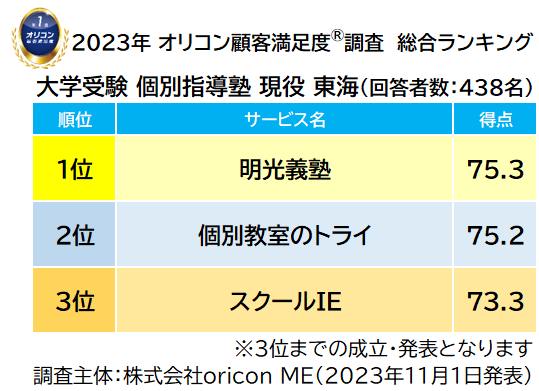 2023年 オリコン顧客満足度(R)調査 大学受験 個別指導塾 現役 東海