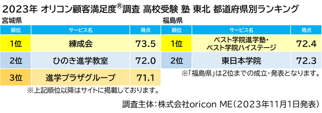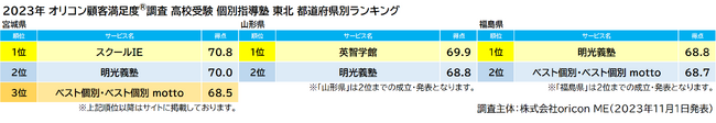 2023年 オリコン顧客満足度(R)調査 高校受験 塾 東北