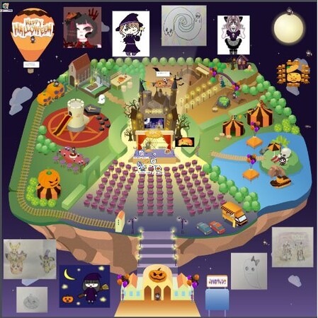 ハロウィン仕様のバーチャル校舎には、事前のイベントで子どもたちが作成したイラストが飾ってありました。