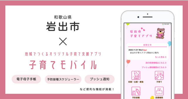 自治体向けサービスを開発する株式会社ミラボ(本社:東京都千代田区、代表取締役:谷川一也、以下「ミラボ」)の子育て支援アプリ「子育てモバイル」が、和歌山県 岩出市に導入され、「岩出市子育てアプリ」として11月1日より提供を開始しました。また、アプリ内で簡単に提出できる「アンケートサービス」を同時導入し、「妊娠7ヶ月 面談アンケート」を実施します。
