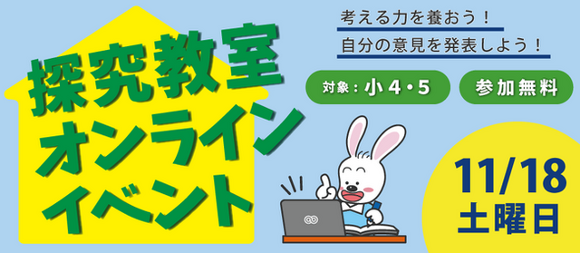 京都・滋賀・愛知を中心に学習塾を展開する京進は、2023年11月18日(土)に、自分の考えを発表する力や自分と異なる意見を聞く力を育てるイベント「探究教室オンラインイベント」を開催します。このイベントは毎回ひとつのテーマを取り上げ、初めて交流する同年代の参加者と一緒に、意見を発表する楽しさや、違う考えを知る面白さを体験することで、子どもたちの思考力や表現力を育てることを目的としています。参加料は無料で、京進の学習塾にお通いでない方も参加が可能です。