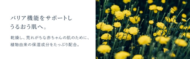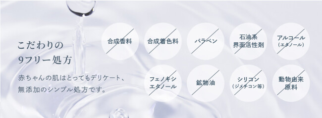 植物由来の保湿成分とこだわりの9フリー処方で、デリケートな赤ちゃんの肌をいたわりながら、ケアする大人の心にも寄り添います。