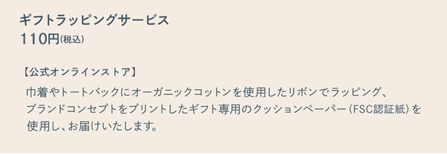 公式オンラインストア・直営店舗では、贈った後も使い続けられる、再生素材を使用した巾着やトートバッグなどをご用意しております。大切な方へのギフトに、ぜひラッピングサービスをご利用くださいませ。