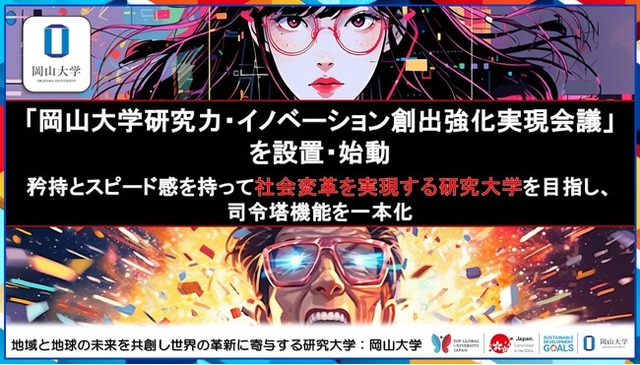 本件は、2023年10月25日に開催された「岡山大学10月定例記者会見」の学長発表「社会変革を実現する研究大学:岡山大学の機能強化として、司令塔『研究力・イノベーション創出強化実現会議』を設置・始動」において、詳細な説明がおこなわれました。
