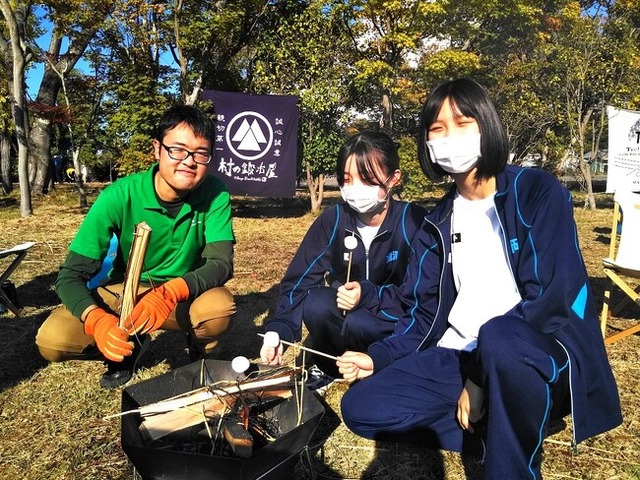 本企画は、加茂暁星高校普通科総合コース1,2年生を対象として、生徒一人一人が地域の企業とつながって、自分の進路や視野を広げていく「ほしかつ」の一環として実施されました。その中で(株)山谷産業との協業を行うグループは、山谷産業のアウトドアブランドである「村の鍛冶屋」の広報活動に従事し、その一環として、身近なものを使ってアウトドア体験を行えることを知ってもらう、という趣旨で、「体験型アウトドアSHOP村の鍛冶屋」企画を実施しました。本企画は、2021年度に続いて3度目の企画となり、国際自然環境アウトドア専門学校は、昨年から企画に参加しております。キャンプやアウトドアスポーツ、アウトドアギアについて学んでいる野外教育・アウトドアスポーツ学科、キャンプビジネス学科の学生8名および担当教員が、事前に山谷産業のスタッフの皆様と会議を行い、企画の趣旨に添う形でのプログラムの提案や提供などを行いました。