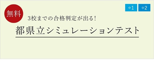「都県立シミュレーションテスト」は、5教科(数学・英語・国語・理科・社会)の無料模試です。各学年で10月までに習った内容を中心に、1都3県の公立高校入試の頻出単元から出題します。