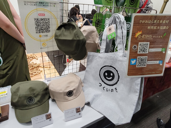 さがみはら津久井産材利用拡大協議会公式ロゴマーク「つくいのき」がプリントされた、トートバッグやワークキャップの販売を行います。