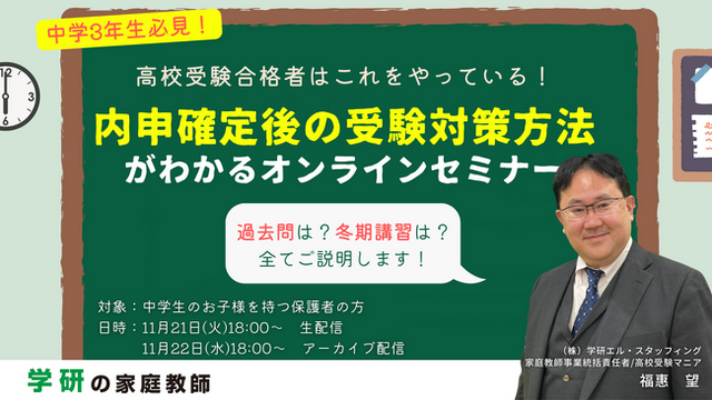 これまで5回のセミナーで好評を博してきた学研の家庭教師きっての高校受験マニアが、