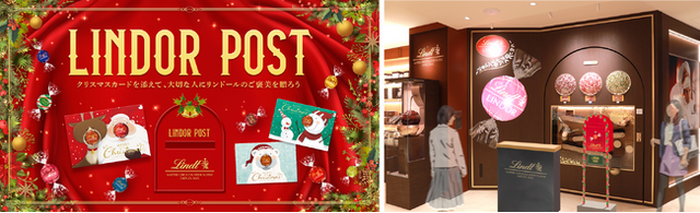 全国6店舗に、クリスマスカードを実際に投函できる「LINDOR POST」が登場。可愛らしいサンタとトナカイのお鼻にリンドールをはめこんだ特別なクリスマスカードを、メッセージとともに大切な人の自宅に無料で郵送できます。