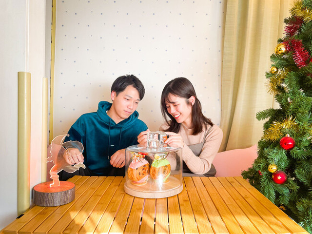 お部屋にはリースやクリスマスツリーを飾るとともに、リビングには「Yogibo Max」を設置し、ふたりだけのクリスマス時間をまったりとお過ごしいただけます。また、いつもよりちょっと贅沢な体験をサポートするドライヤーやシャワーヘッドなどの美容家電を客室内に設置し、クリスマスならではの特別な滞在をさらに充実させます。