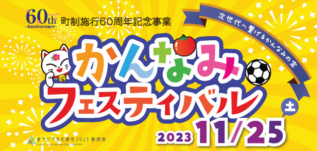かんなみフェスティバル実行委員会(静岡県函南町 代表:西村 悟)は、函南町制施行60周年を記念し、「次世代へ繋げるかんなみの宝」をテーマに、観光振興、教育・文化・スポーツ振興、地域振興などを目指すイベントとして、11月25日(土)に函南町内3カ所を会場に「かんなみフェスティバル」を開催します。