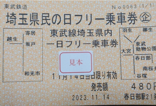 11月14日(火)埼玉県民の日にご利用いただけるフリー乗車券を発売