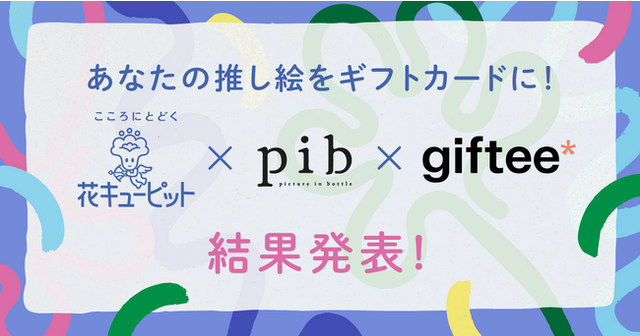 2023年8月7日(月)の「花の日」から8月25日(金)の期間、「花キューピット」、「pib」、「giftee(R)」が共同で開催した「あなたの推し絵をギフトカードに!花と一緒に贈りたいイラストをリクエストしようキャンペーン」は、「pib」で公開されているイラスト約10万点の中からユーザーのリクエストをもとに選んだイラスト数点を、「花キューピット」内の「花とみどりのeギフト公式サイト」および「giftee(R)️」でeギフトを贈る際に添えるデジタルのギフトカードデザインとして採用するキャンペーンです。クリエイターおよびその作品の認知度向上の一助となるよう、「pib」でイラストを公開しているクリエイターと「giftee(R)」ユーザーとの接点をつくることを目的に開催しました。この度、リクエストいただいたイラストの中から、「花キューピット賞」および「giftee賞」を受賞したイラストをそれぞれ3点決定いたしました。「giftee賞」を受賞したイラスト3点については、11月10日(金)より、「giftee(R)」のギフトカードデザインとして採用し提供を開始いたします。また、「花キューピット賞」受賞イラスト3点についても、「花キューピット」が運営する「花とみどりのeギフト公式サイト」でeギフトを贈る際に添えるデジタルのギフトカードデザインとして、後日提供開始を予定しています。