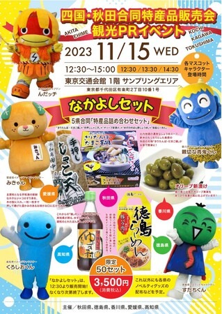 四国4県と秋田県が連携し、特産品を合同で販売しながら、各県への誘客促進や県産品の認知度向上を図るイベントを開催します!