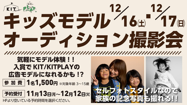 KIT・KITPLAYキッズモデルオーディション撮影のご参加者の中からグランプリモデル1~3名を選出いたします。