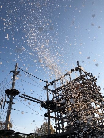 本イベントでは、雪をイメージした“泡”が大量にエリア内に放たれ、難易度がUPしたアスレチックを楽しんで頂きながら、まるで雪が舞っているように見える美しい「クレヨンしんちゃん」の世界観を体験頂けます。「泡大砲」は、アスレチック最上部の「侍大将コース」のゴール地点に設置され、高さ8mの上空からエリア全体に泡を降らせます。冬の雰囲気に染まった「クレヨンしんちゃんアドベンチャーパーク」でハラハラドキドキのアスレチックを遊びつくしましょう!