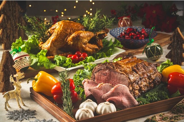 沖縄料理をはじめ、世界各国の料理に沖縄や宮古島の食材を使ったアレンジ料理がお楽しみいただけるディナービュッフェ。期間中は、ベリーソースとともに楽しむローストターキーやローストビーフなどクリスマスらしいメニューが登場します。