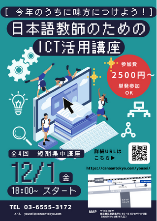 外国人人材への日本語教育サービスを展開するカナン東京日本語学校は、2023年12月から4回シリーズで、授業準備の手間を削減しつつ学習効率を上げる、日本語教師のためのICT活用講座を開講(単発受講も可能)。最新の電子黒板やChatGPTにも触れながら、明日から使えるデジタル日本語教育のヒントを紹介する。