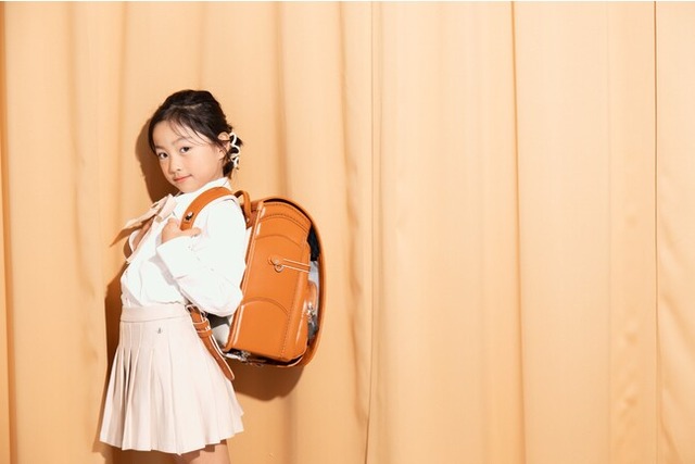 衣装はワントーンコーデを意識し、ランドセルはポイントになるキャメルをセレクト
