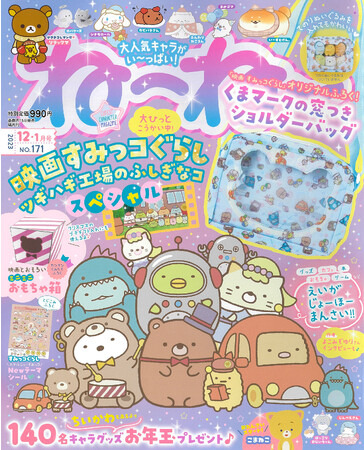 今号の『ねーねー』は映画に登場する「おもちゃ姿のすみっコたち」の表紙がめじるし☆ ふろくのショルダーバッグはもちろん、巻頭ページにも映画を大特集。作者・よこみぞゆりさんのインタビューや、グッズやカフェ、スイーツ、書籍など映画の最新ニュースがもりだくさん♪ 大反響のプレゼントコーナーは、新年お年玉企画でどどーんと140名に当たっちゃう! プレゼントは「ちいかわ」グッズもあるよ~!