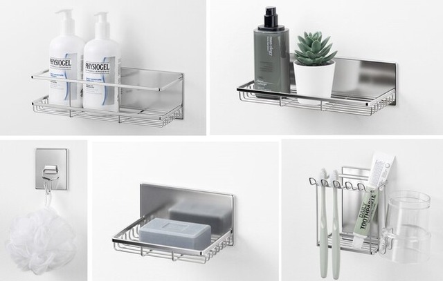 ラインアップは、気軽につるせるフックや、ソープトレー、歯ブラシスタンド、ボトルラック、多目的に使えるトレーの5アイテムをご用意。フック以外の底面はスリットが入っており水が溜まらない為、ぬめりやすいディスペンサー等の底面も清潔に保つことができます。