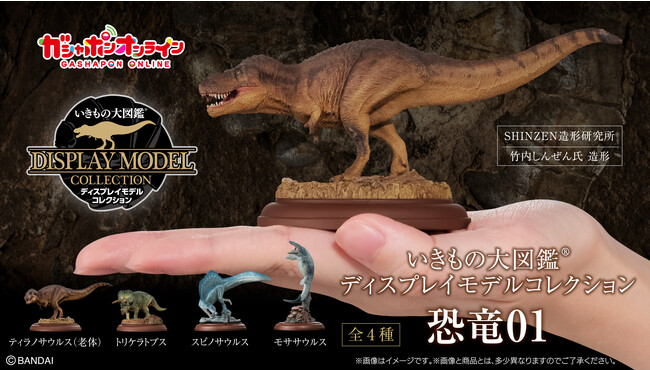 株式会社バンダイ ベンダー事業部(本社:東京都台東区)は、シリーズ累計1,260万個以上(2023年10月時点)を出荷している「いきもの大図鑑」より新シリーズとなる「いきもの大図鑑ディスプレイモデルコレクション 恐竜01」(1回1,000円・税10%込、全4種)を2023年11月15日(水)よりオンラインショッピングサイト「ガシャポンオンライン」にて予約開始いたします。また、2024年3月より順次全国のガシャポンバンダイオフィシャルショップ、玩具売場、量販店、家電店などに設置されたカプセルトイ自販機にて発売予定です。