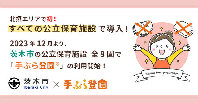 BABY JOB株式会社(本社:大阪府大阪市、代表取締役社長 上野公嗣)は、2023年12月より大阪府茨木市の公立保育施設全8園において、保育施設向け紙おむつのサブスク「手ぶら登園」が利用されることをお知らせします。大阪府の北摂エリアの公立保育施設では、初の取り組みとなります。