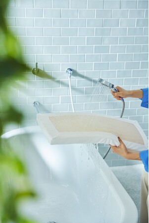 中材は4分割になっているので、汚れた部分のみを洗うことができ、コンパクトで干す時もかさばりません。また、パーツの位置を自由に入れ替えできるので、汚れやへたりが気になったパーツは足元の部分へ移動させることもできます。