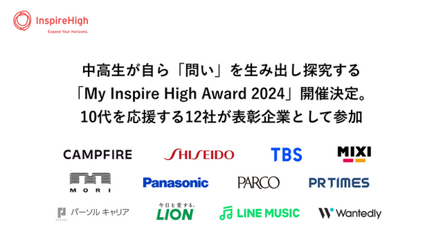 「世界とつながる探究的な学びを手軽に教室で」をコンセプトとしたEdTech教材を提供する株式会社Inspire High(本社:東京都千代田区、代表:杉浦太一)は、生徒自らが立てた「問い」を探究し、学びの成果をアウトプットする「My Inspire High Award 2024」を開催します。10代を応援する12社の企業が表彰企業として参加し、2024年2月17日には全国大会が行われます。