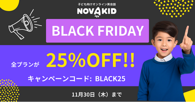 年に一度のお得なブラックフライデーキャンペーンを利用して、今からノバキッドでオンライン英会話にチャレンジしてみませんか?