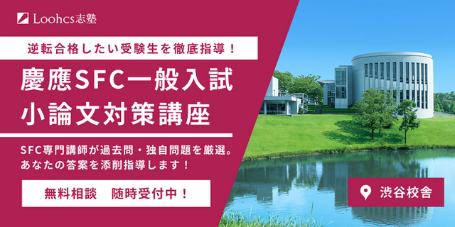 SFCで出題される小論文は通常対策のみでの合格は厳しいでしょう。なぜなら、SFCの小論文は『SFCのことを理解し、SFCを本当に求める人』しか合格出来ない仕組みになっているからです。つまり、高度な文章表現力、論理的思考力などに加え『SFCが求める回答』を理解した上で、答案作成を行う必要があるのです。