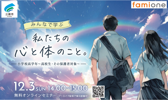 株式会社ファミワンは、広島県三原市健康LINEサポート事業の一環として小学校高学年~高校生・保護者向けの性教育セミナーを12月3日にオンライン開催いたします。