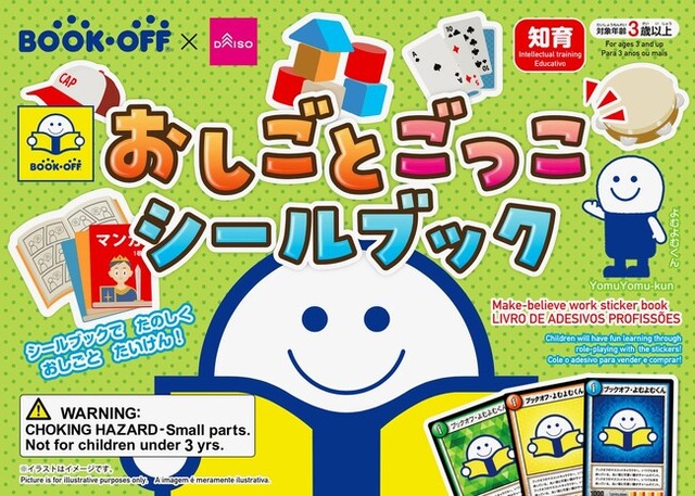「おしごとごっこシールブック ブックオフ」は、ブックオフ店舗が通常行っている買取、販売のおしごとを、色々な商品のシールを使って楽しく体験できます。買い取りをした商品を綺麗に磨いて、売場に並べたり、お客さまに手に取ってもらうように商品の陳列を工夫したり、楽しみながら、おしごとの体験や、モノを大切にする気持ちを養うことができます。