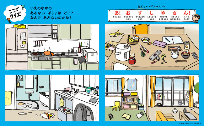 巻末には家の中の危ないポイントを親子で確認できるクイズや、子どもを守るためのポイントを解説した親御さん向けのページもあります!