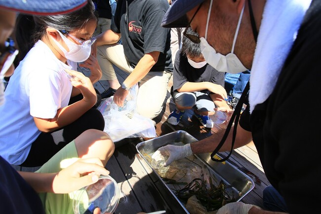 海洋研究開発機構(JAMSTEC)、国際海洋環境情報センター(GODAC)の協力のもと、子どもたちと海のSDGsを考えるイベントを開催。2022年は帆船「みらいへ」に乗船して海の環境問題を考え、本年はオンラインセミナーを活用し、海のSDGsをテーマに夏休みの自由研究に取り組み、自慢の自由研究作品を集めコンテストも行いました。