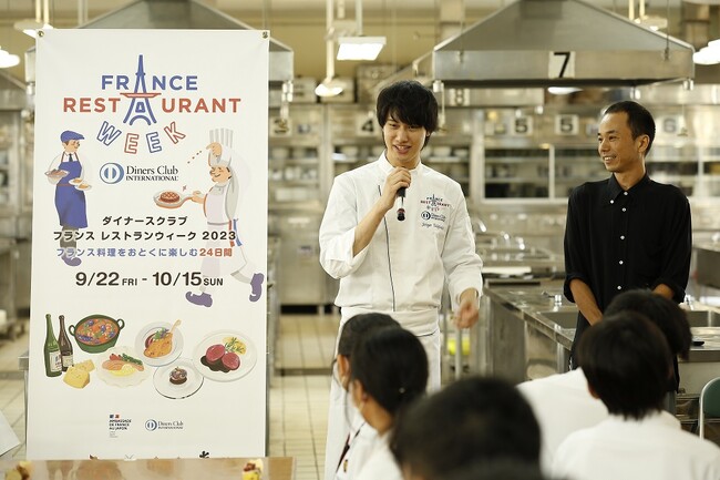 ダイナースクラブが長年協賛している「ダイナースクラブ フランス レストランウィーク」の関連イベントとして、2022年は大阪の中学校で、本年は沖縄の高校でフードロスや食の循環を考える食育イベントや、お子様と一緒にお菓子や料理を作る教室を開催。料理教室では金融クイズも実施し、小さなお子様にも大変好評でした。