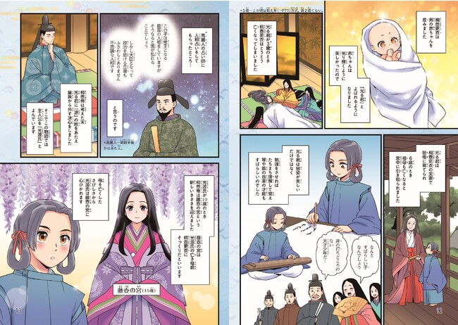 『源氏物語』の全54帖の主要ストーリーを、フルカラーのマンガで楽しく読むことができます。主人公の光源氏を中心とした多彩な登場人物もわかりやすく紹介しています。