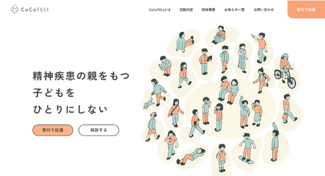 NPO法人CoCoTELIは精神疾患の親をもつ子どものメンタルヘルス問題の解決に向け、地域差関係なく繋がれるオンラインの居場所と個別相談を中心としたサポートを行なっております。