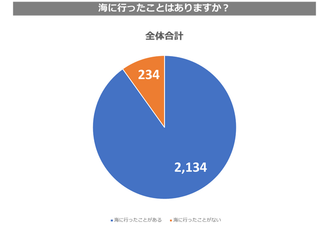 さらに、「海に行ったことがありますか?」という質問に対して、海に行ったことがないと回答した割合は、約10%という結果となりました。
