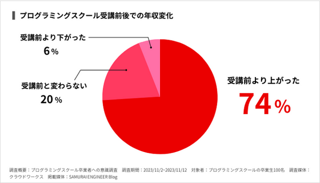 [11]74%がスクール受講前より「年収が上がった」と回答