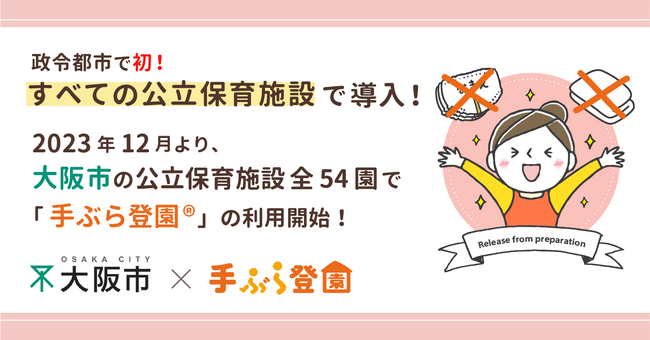 BABY JOB株式会社(本社:大阪府大阪市、代表取締役社長 上野公嗣)は、2023年12月より大阪府大阪市の公立保育施設(直営)全54園において、保育施設向け紙おむつのサブスク「手ぶら登園」が利用されることをお知らせします。すべての公立保育施設で「手ぶら登園」が導入されるのは、全国の政令都市で初の取り組みとなります。