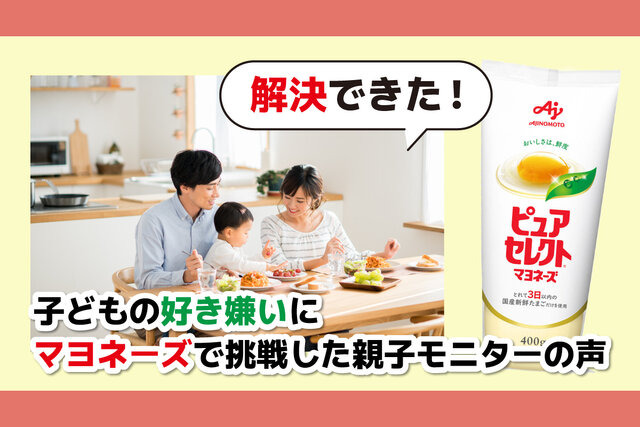 「子どもの好きな味付けが決まっていましたが、いつものお料理にピュアセレクト マヨネーズを使うことで新しい味付けをすることができ、子どもの飽きを防げました」