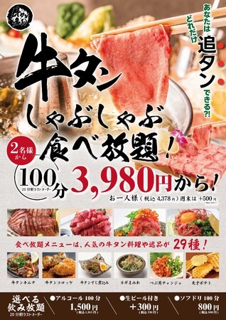 この度『牛タン番長 』吉祥寺/川崎店にて、牛タン好きには堪らない牛タンしゃぶしゃぶ食べ放題コースを提供いたします。